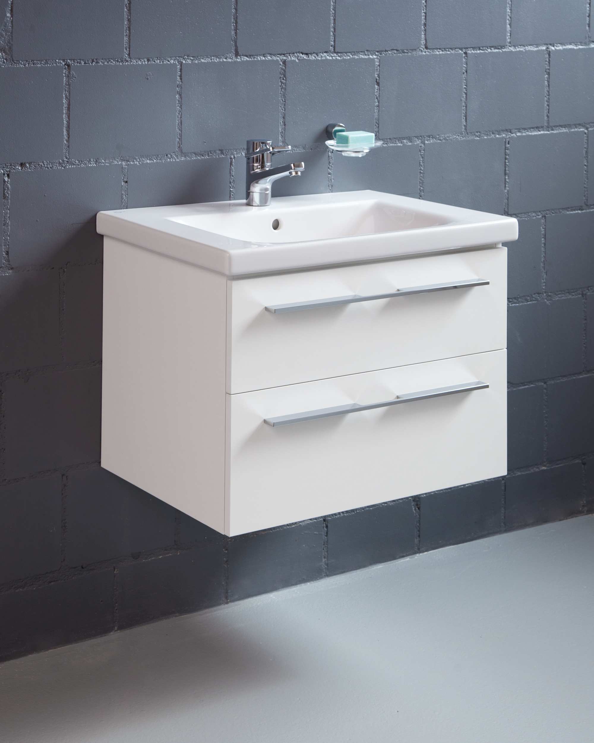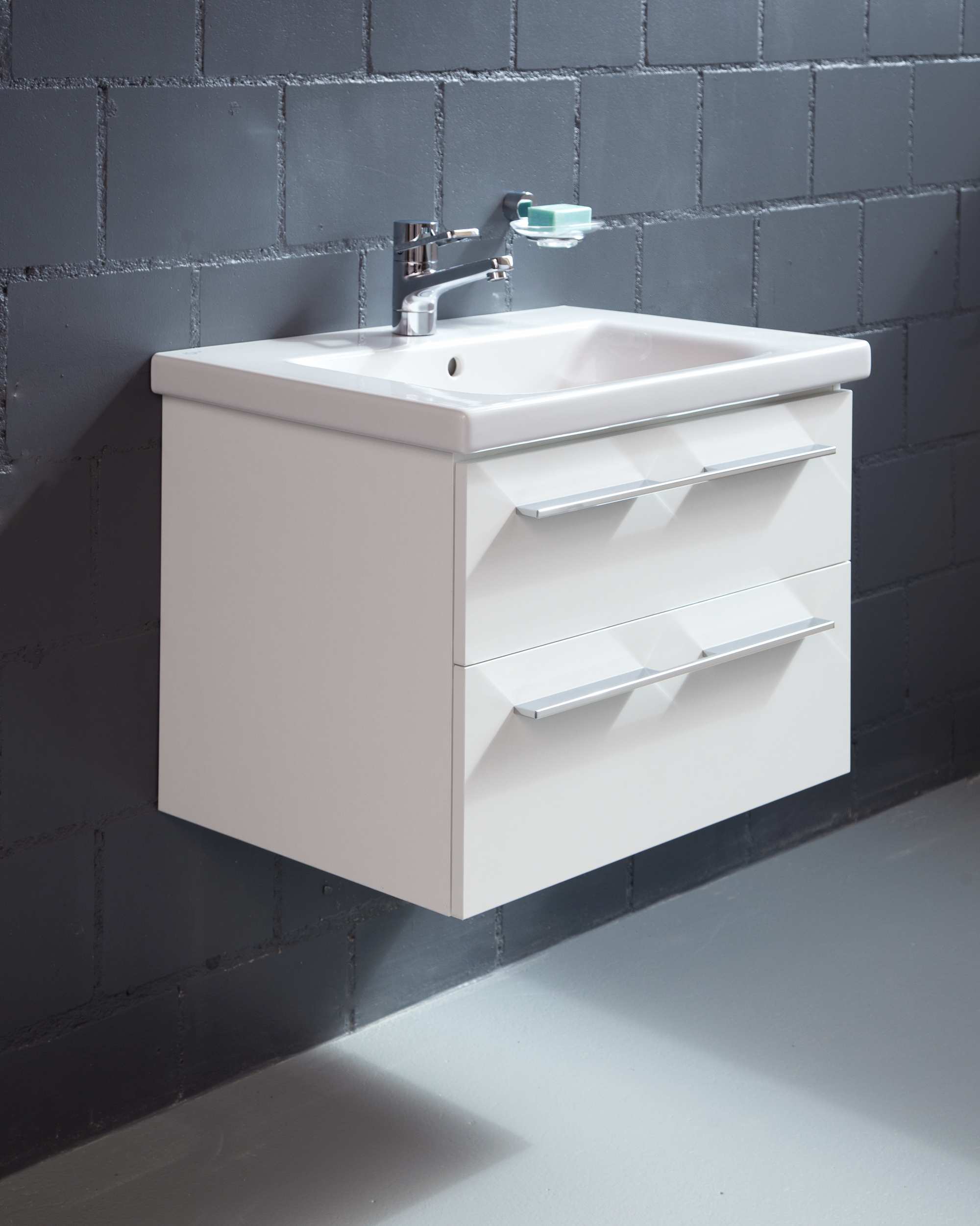 Relief: Fronten Relief mit schwarzer MDF-Trägerplatte, Korpusseiten in MDF schwarz mit Relief, Seiten und Fronten seitlich in Gehrung (Bei Keramikwaschtisch-Unterbauten auf Anfrage) Griffleisten im passenden Holz glatt furniert (gegen Mehrpreis)