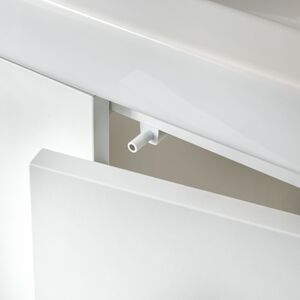 Melaminharzbeschichtete Front kantig, mit PVC-Kanten und Griffleisten. Als Farben für die Griffleisten können alle Sanitär-, RAL- und NCS-Farben sowie alle Frontfarben verwendet werden.