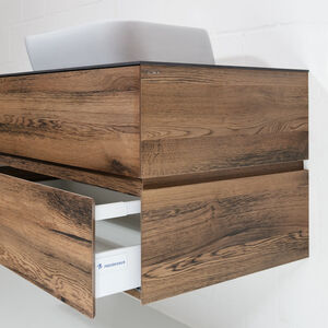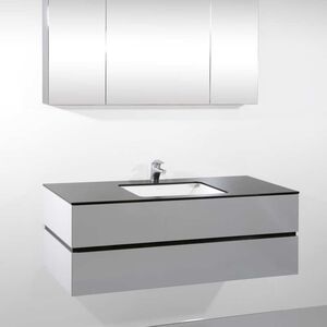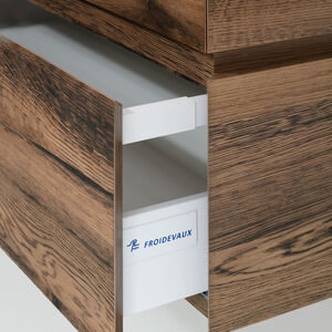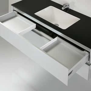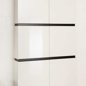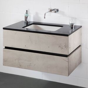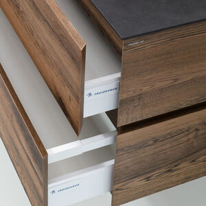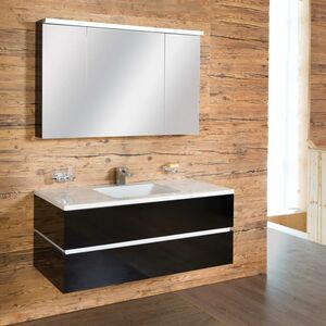 Relief: Fronten Relief mit schwarzer MDF-Trägerplatte, Korpusseiten in MDF schwarz mit Relief, Seiten und Fronten seitlich in Gehrung (Bei Keramikwaschtisch-Unterbauten auf Anfrage) Griffleisten im passenden Holz glatt furniert (gegen Mehrpreis)