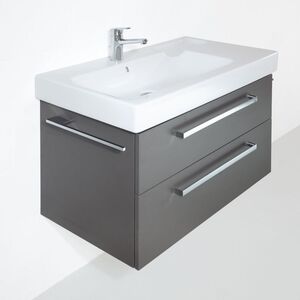 Relief: Fronten Relief mit schwarzer MDF-Trägerplatte, Korpusseiten in MDF schwarz mit Relief, Seiten und Fronten seitlich in Gehrung (Bei Keramikwaschtisch-Unterbauten auf Anfrage) Griffleisten im passenden Holz glatt furniert (gegen Mehrpreis)
