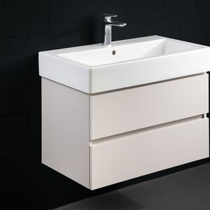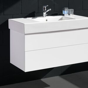 Relief: Fronten Relief mit schwarzer MDF-Trägerplatte, Korpusseiten in MDF schwarz mit Relief, Seiten und Fronten seitlich in Gehrung (Bei Keramikwaschtisch-Unterbauten auf Anfrage) Griffleisten im passenden Holz glatt furniert (gegen Mehrpreis)