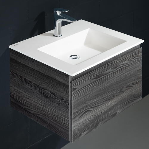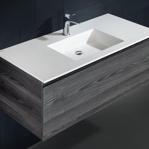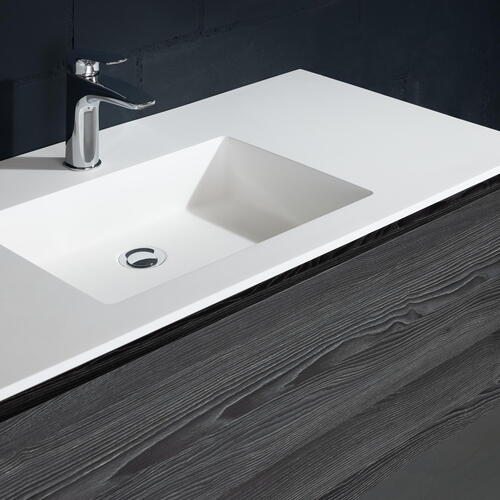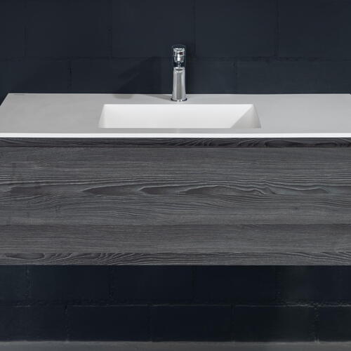 La ceramique est régulièrement choisie par les personnes à la recherche d’un plan de toilette très fin, à l’esthétique moderne. La résistance aux rayures, aux tâches et acides grâce à sa non-porosité demeure l’un des principaux avantages du plan de travail en céramique. Avec le granit et le quartz, il s’agit tout simplement de la matière offrant les meilleurs compromis à ce niveau-là. De plus, ce matériau hygiénique ne nécessite aucun entretien particulier : il suffit de nettoyer votre plan de travail en céramique à l’eau savonneuse puis de rincer à l’eau tiède. Si une tâche résiste, gratter avec le côté récurrent de l’éponge devrait permettre de l’effacer. Si la ceramique bénéficie d’une excellente résistance globale, le matériau peut présenter une légère faiblesse face aux impacts, en particulier sur les arêtes et les chants de la table de toilette. A noter qu’il existe du carrelage mural ou pour le sol disponible dans les mêmes coloris. Les trois couleurs de céramique White, Grey et Graphite ont une épaisseur de matériau de 12 mm, Mud a une épaisseur de matériau de 6 mm.