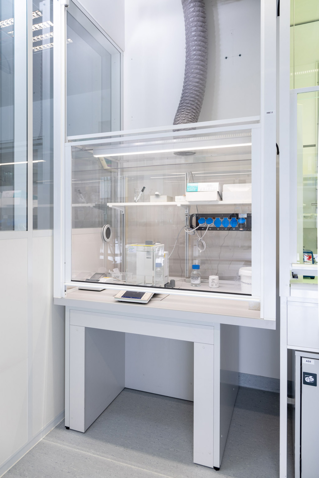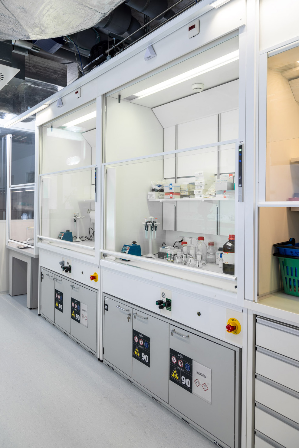 Ces créations sur mesure ne correspondent à aucun standard, elles ont été spécialement conçues pour répondre aux exigences et aux processus de travail d'Intertek Basel. Nos solutions allient fonctionnalité et design innovant, afin de satisfaire les plus hauts standards dans le domaine des laboratoires.