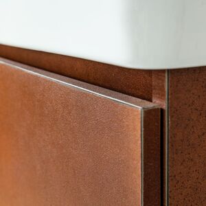 Panneau mélaminé avec chants PVC. Toutes arêtes légèrement arrondies.